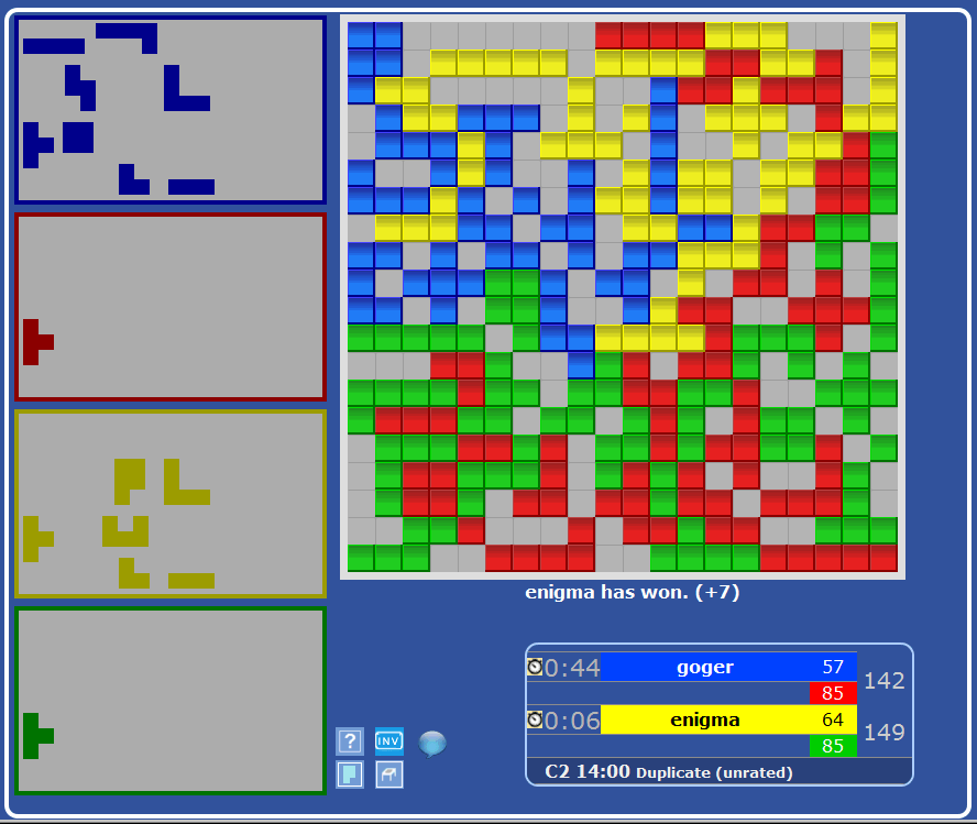 enigma .... 3-1 +26 kmart ..... 3-1 +12 dossman ... 3-1 + 9 goger ..... 2-2 +15 lisatuohi . 1-3 -22 pinpounette 0-4 -40