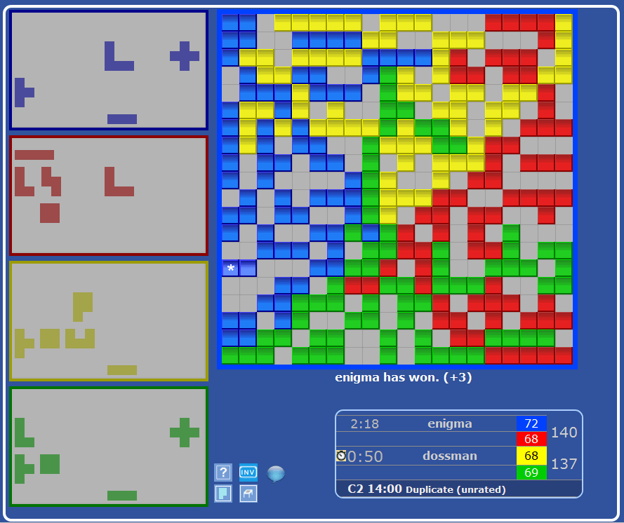 enigma .... 3-1 +26 kmart ..... 3-1 +12 dossman ... 3-1 + 9 goger ..... 2-2 +15 lisatuohi . 1-3 -22 pinpounette 0-4 -40